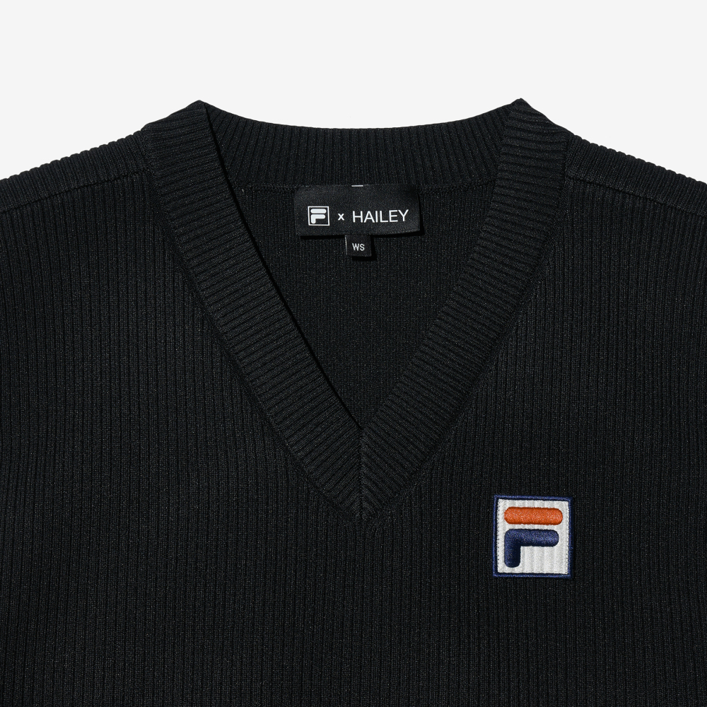 [6% 적립] FILA Hailey Bieber V-Neck Knit Vest Black