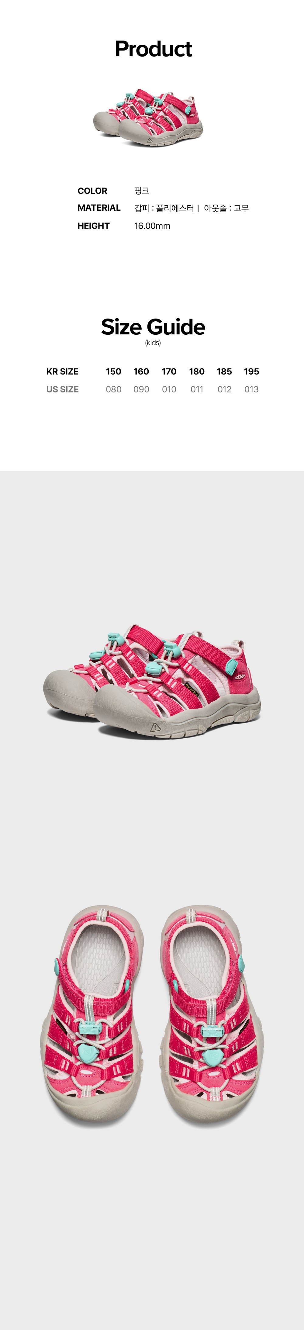 킨 뉴포트 H2 키즈 샌들 라즈베리/핑크