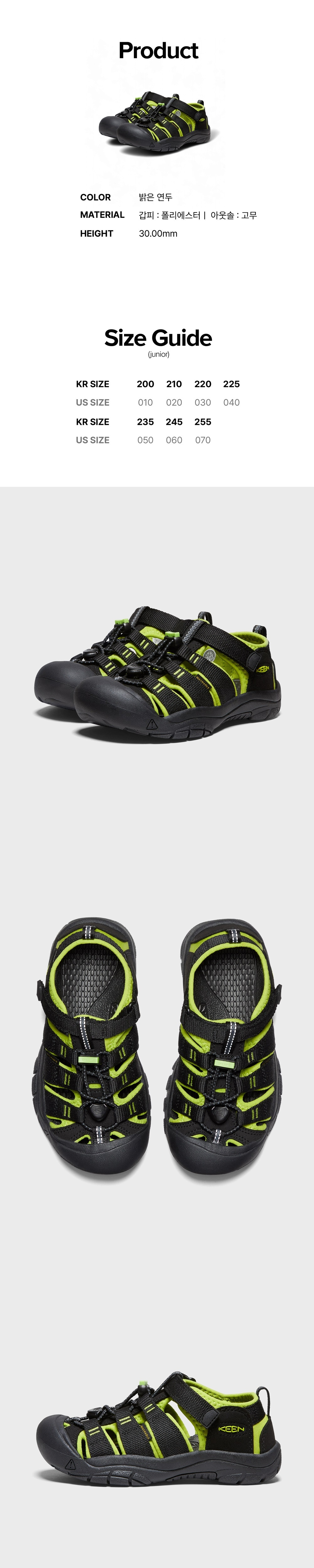 킨 뉴포트 H2 주니어 샌들 블랙/라임 그린