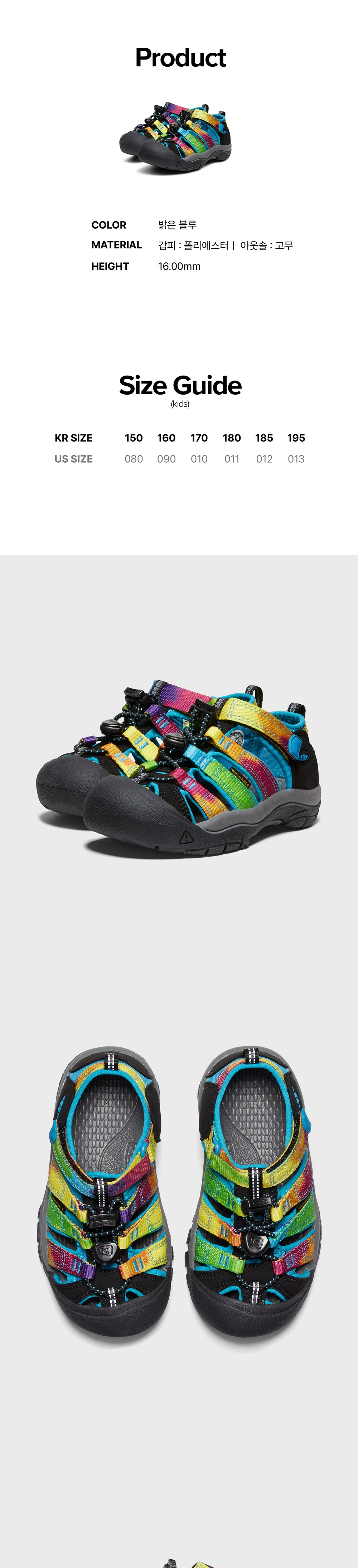 킨 뉴포트 H2 키즈 샌들 레인보우 타이 다이