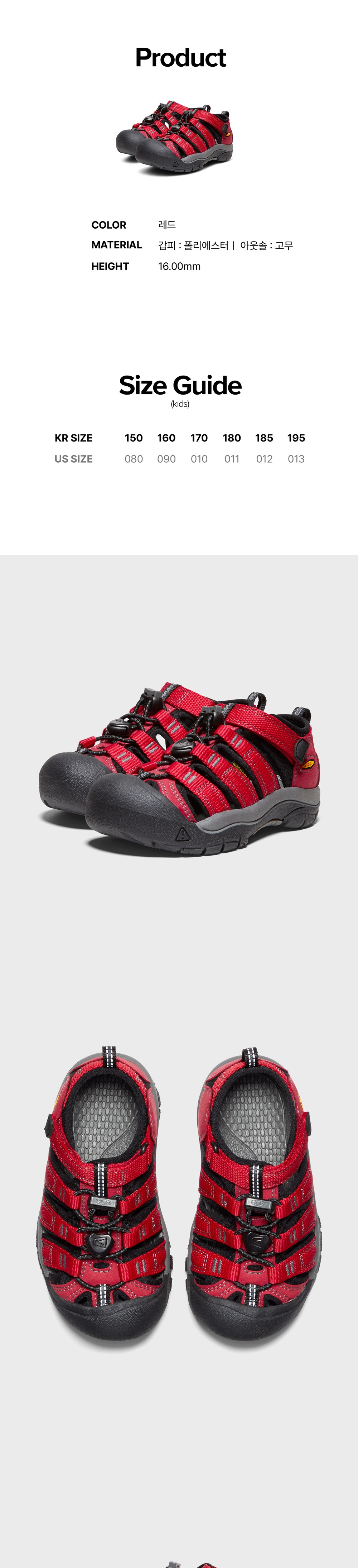 킨 뉴포트 H2 키즈 샌들 리본 레드/가고일