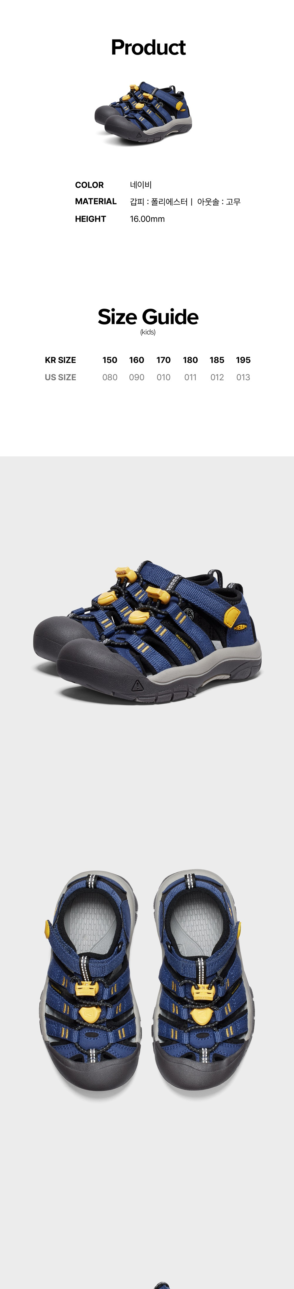 킨 뉴포트 H2 키즈 샌들 네이비/킨 옐로우