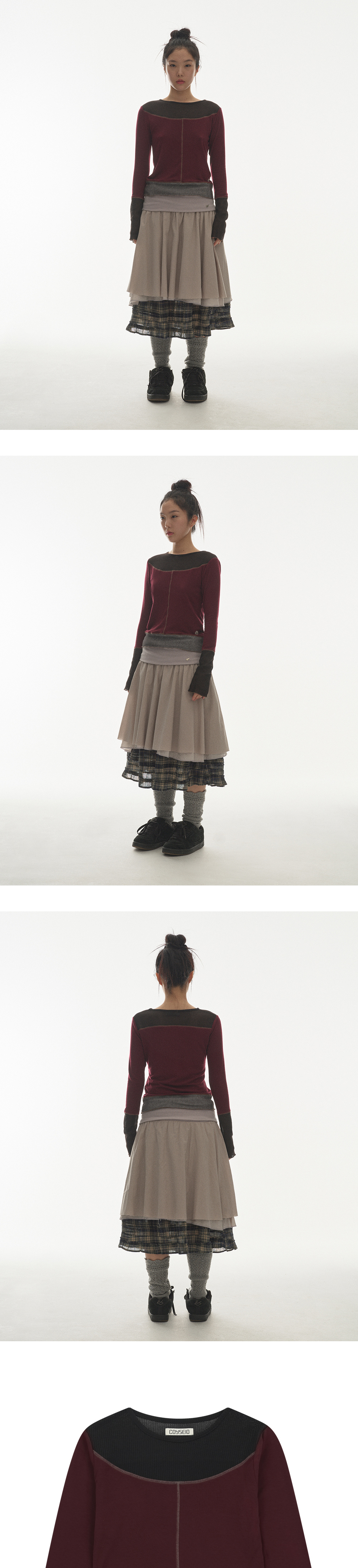 코이세이오 네트 스티치 롱슬리브 플럼 레드