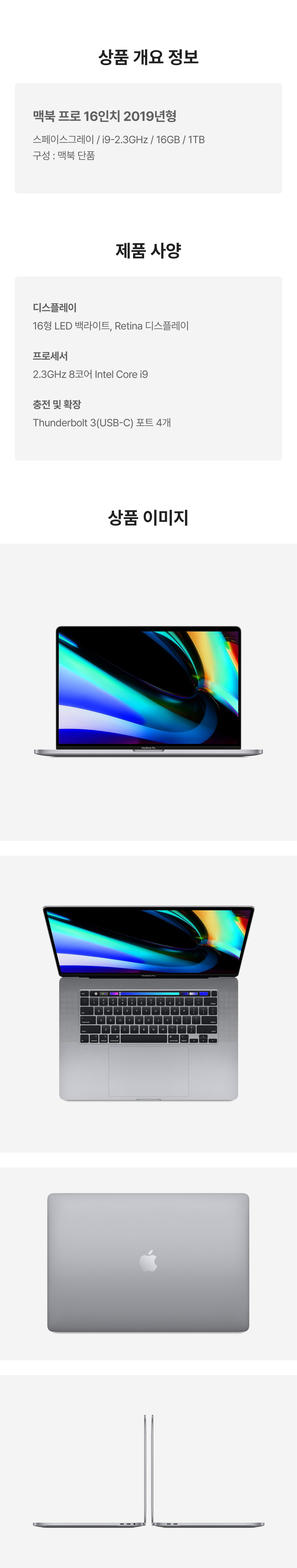 [S등급] 리퍼비시 2019 맥북 프로 16 i9-2.3GHz 1테라 SSD 16기가 램 스페이스그레이