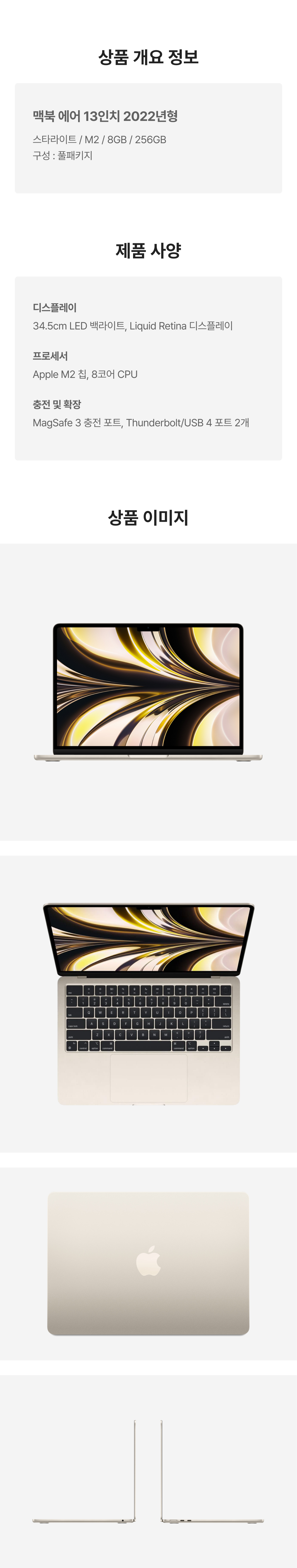 [A등급] 리퍼비시 2022 맥북 에어 13 M2 256기가 SSD 8기가 램 스타라이트