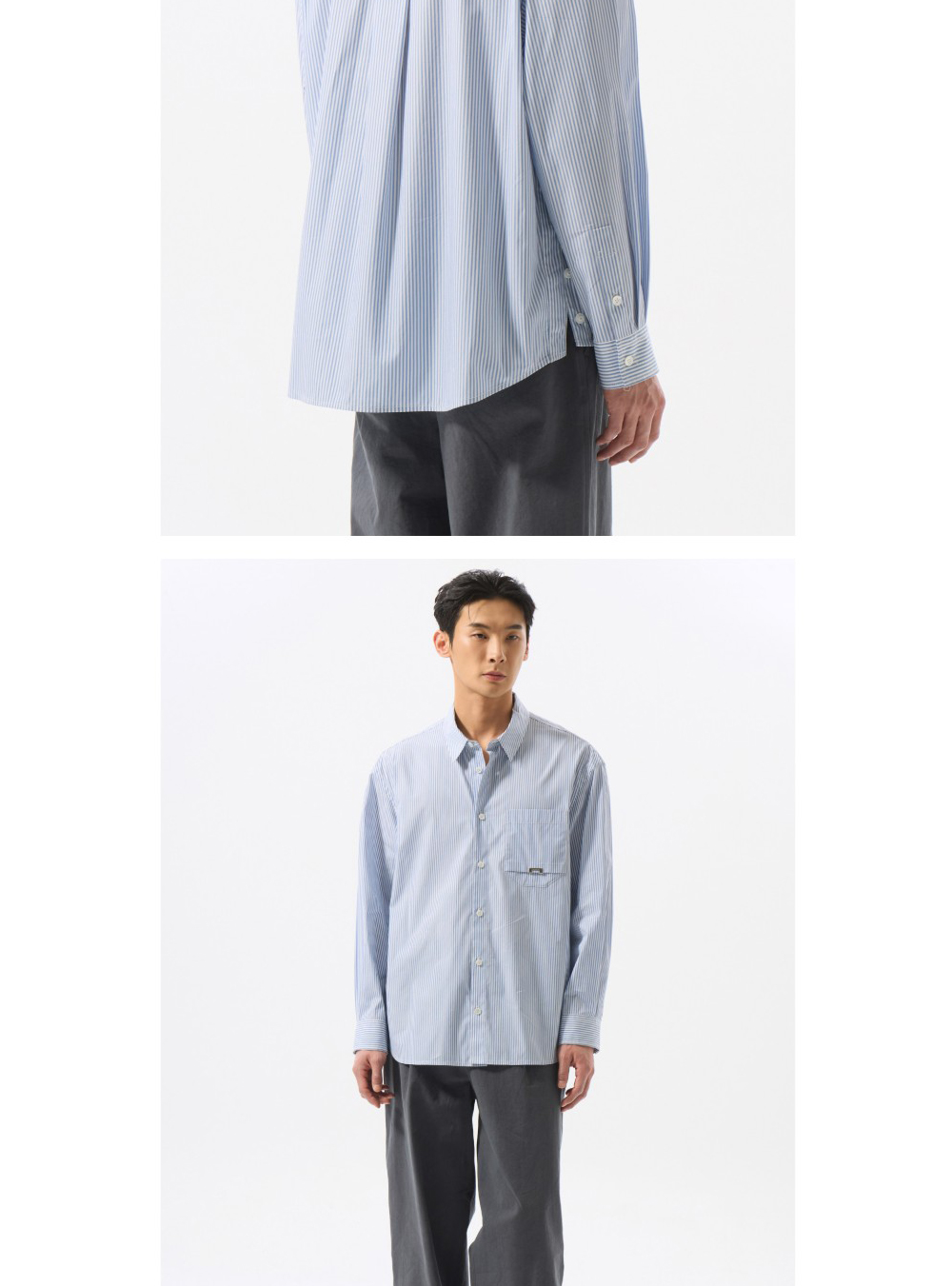 커스텀멜로우 2칼라 디테일 사이드 슬릿 셔츠 스트라이프 스카이 블루