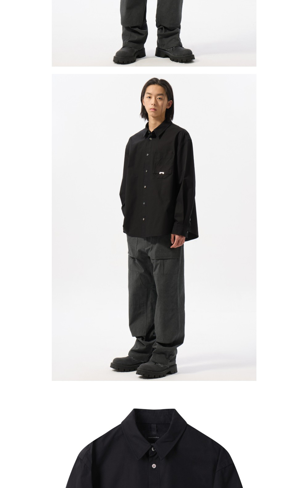 커스텀멜로우 2칼라 디테일 사이드 슬릿 셔츠 블랙