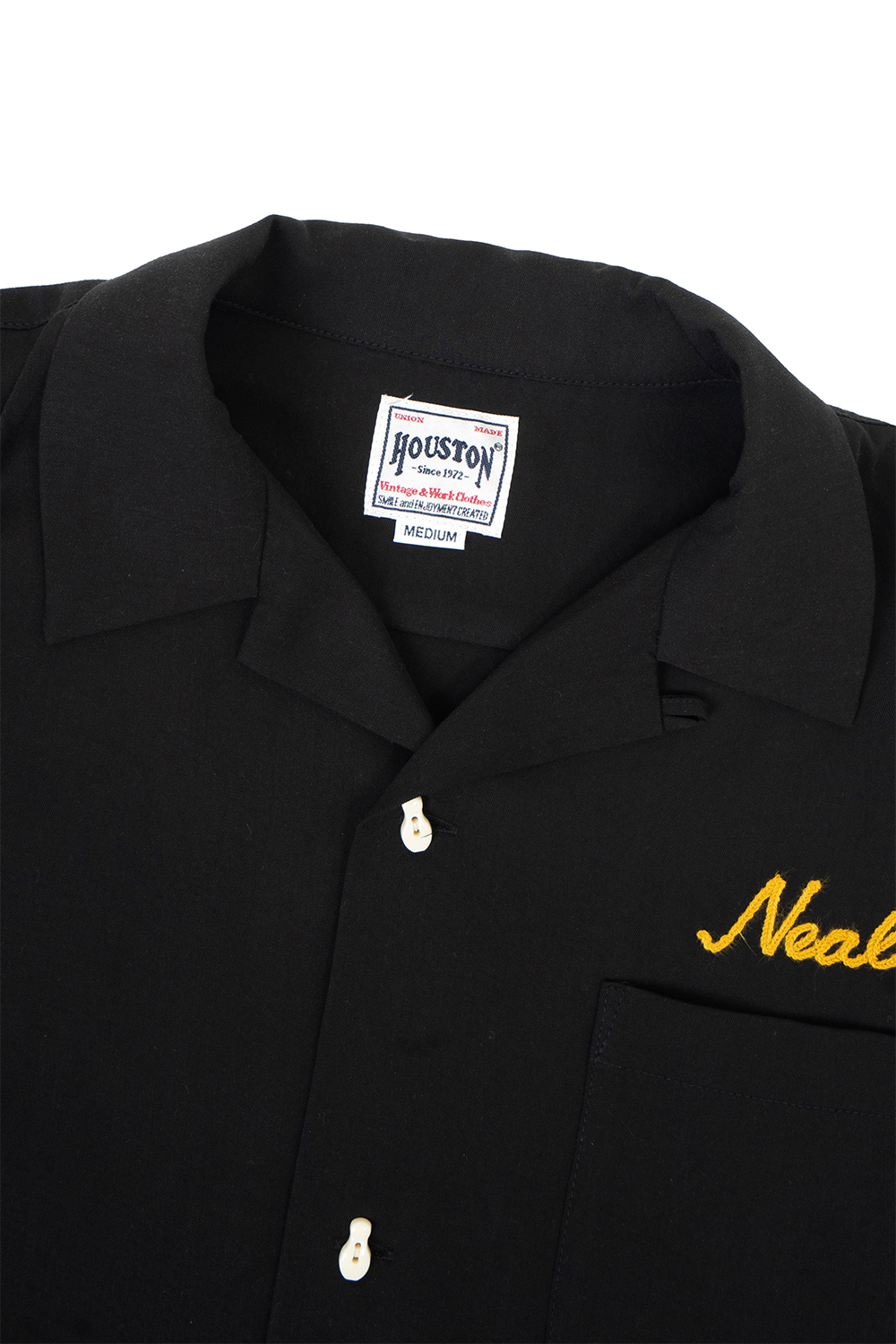 Houston Japan 41178 Bowling S/S Shirt (Milwaukee) - Black 휴스턴재팬의 스테디셀러인 볼링셔츠 반팔버젼입니다. 원단은 촉감이 좋은 레이온/텐셀 혼방원단을 사용했으며 볼링핀 버튼 등 빈티지 사양을 재현했습니다. 자수 기법에도 심혈을 기울여 클래식한 외관의 체인 자수로 마무리했습니다. * Rayon 70% / Tencil 30% * 빛에 의한 제품의 색감 차이가 존재 할 수 있습니다. * Made in China