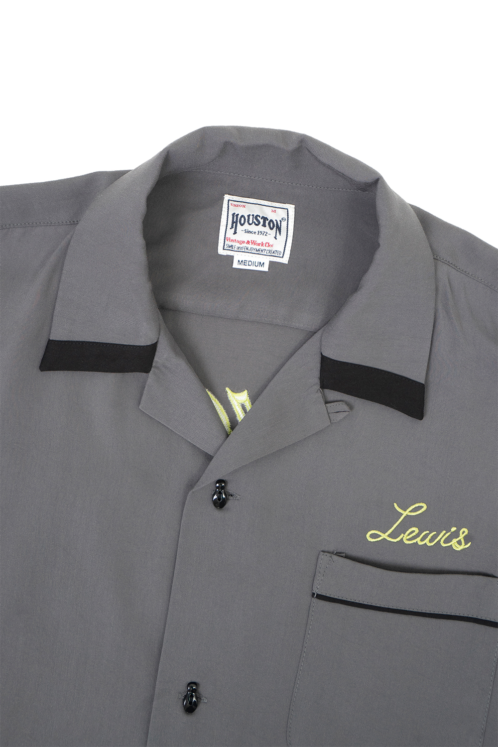 Houston Japan 41179 Bowling S/S Shirt (Concord) - Charcoal 휴스턴재팬의 스테디셀러인 볼링셔츠 반팔버젼입니다. 원단은 촉감이 좋은 레이온/텐셀 혼방원단을 사용했으며 볼링핀 버튼 등 빈티지 사양을 재현했습니다. 뒷 판의 카 클럽 무늬가 특징입니다. * Rayon 70% / Tencil 30% * 빛에 의한 제품의 색감 차이가 존재 할 수 있습니다. * Made in China