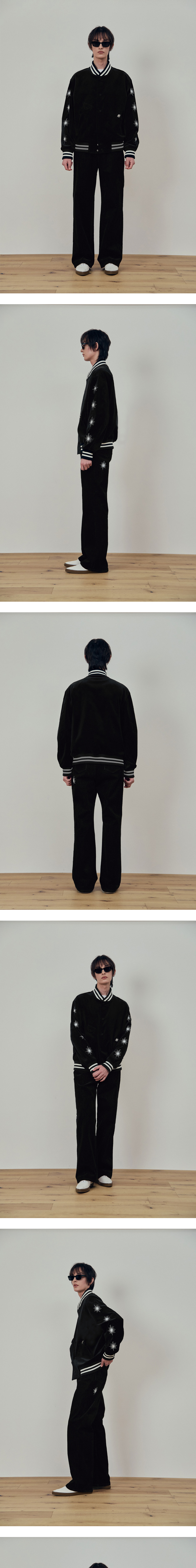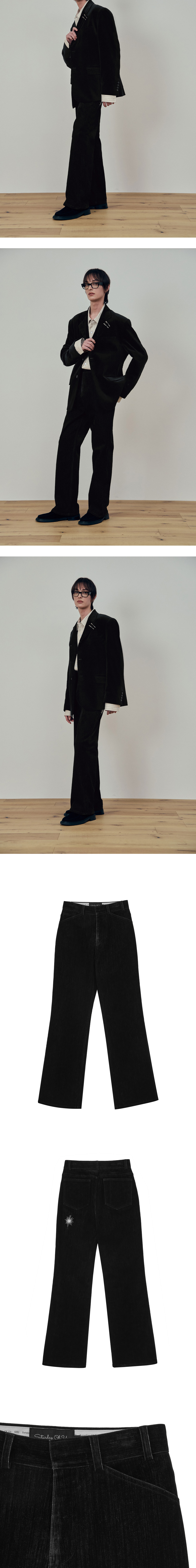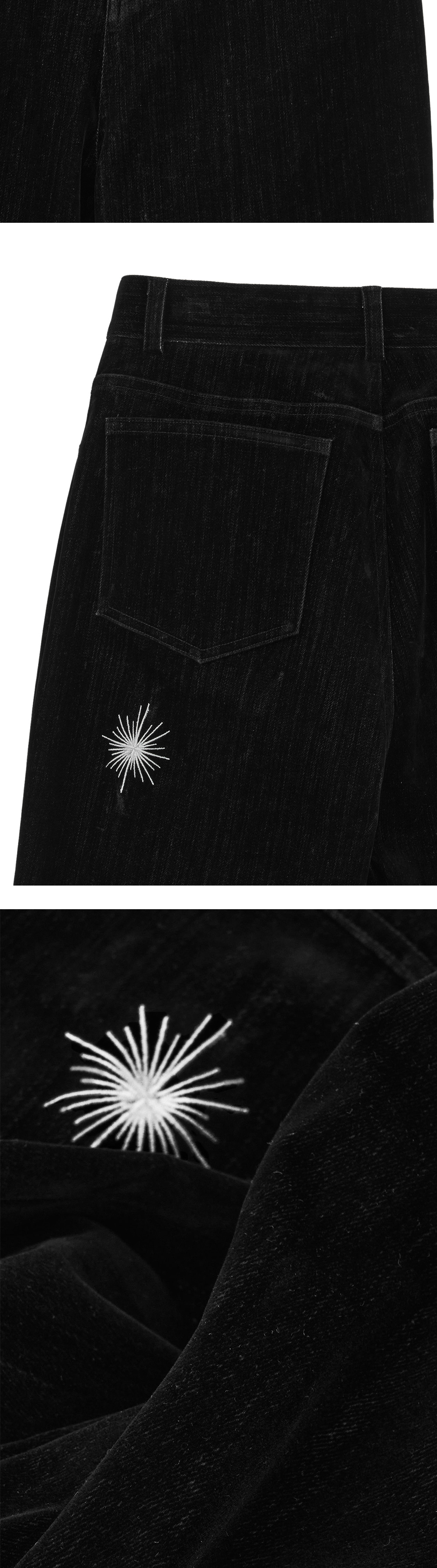 에스티유 엠브로더리 벨벳 데님 팬츠 블랙