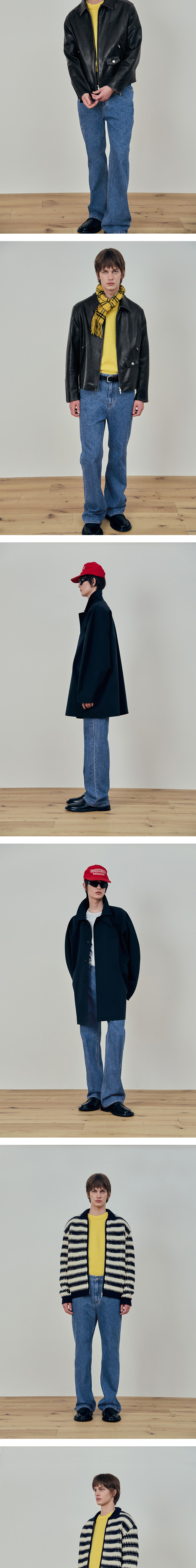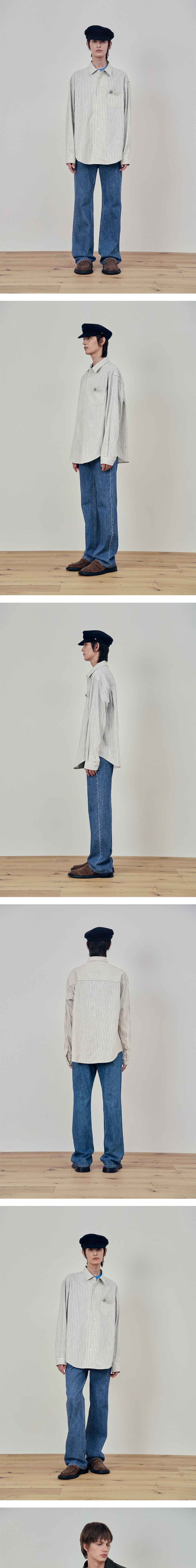 에스티유 스트라이프 데님 팬츠 미드 블루