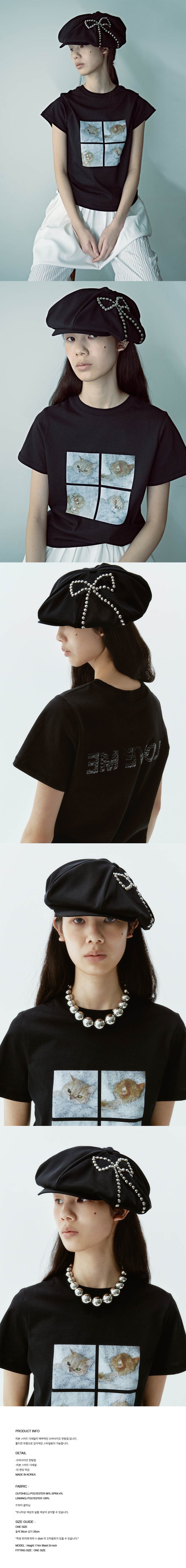 김미더영 리본 오버사이즈 헌팅 캡 / 블랙