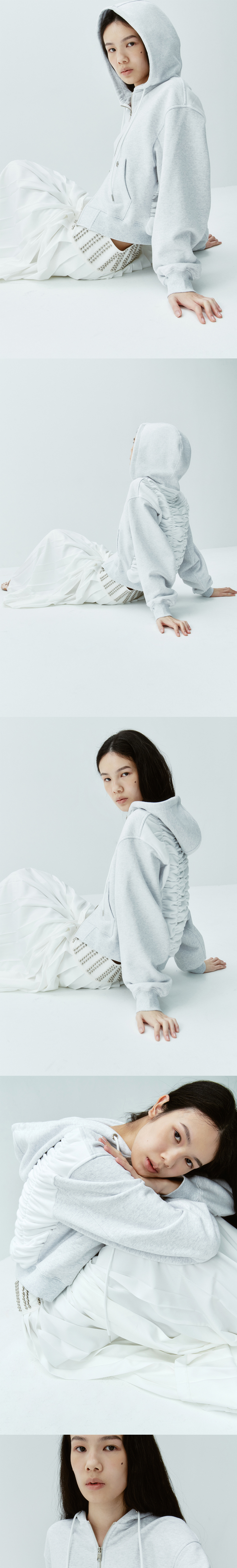 GIMMETHEYOUNG G_back Shirring Hood Zip-up_25ss Light Grey