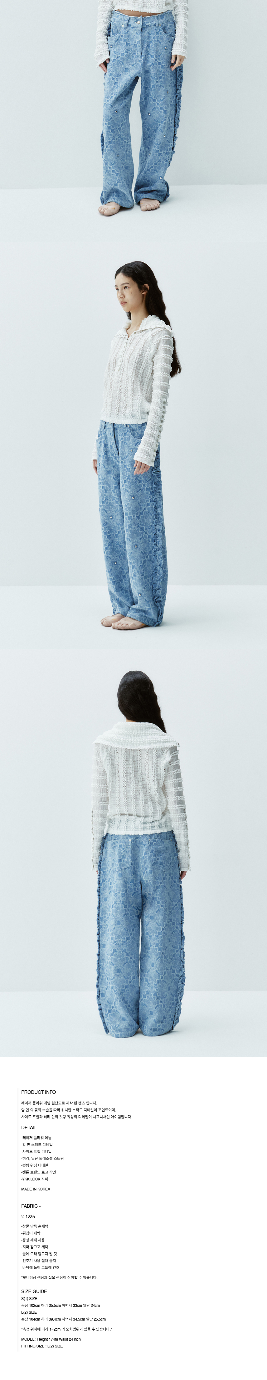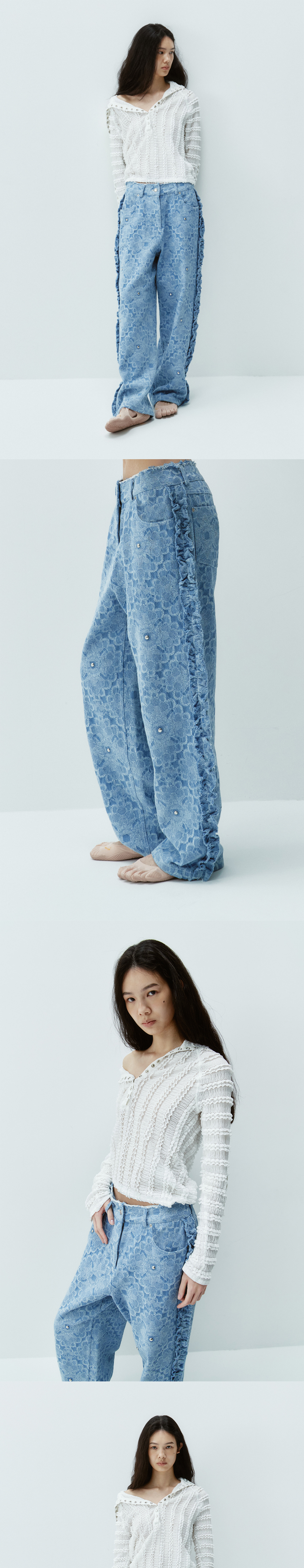김미더영 스터드 플라워 컷 프릴 팬츠 하늘색