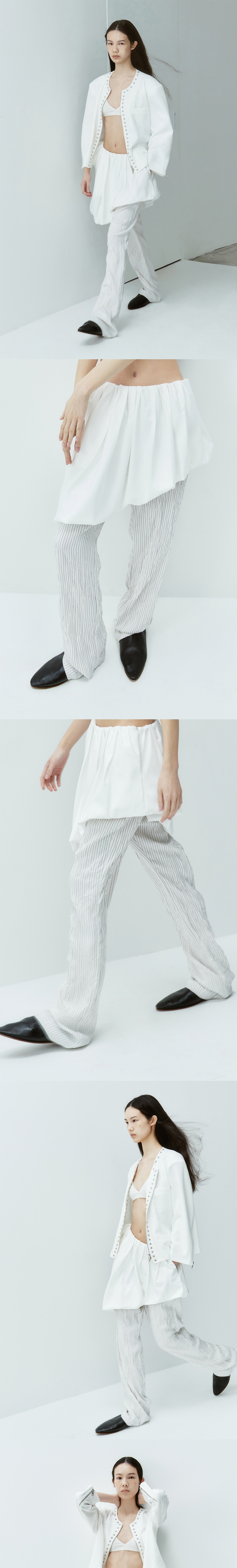 김미더영 퍼프 드레이프 스커트 팬츠 화이트