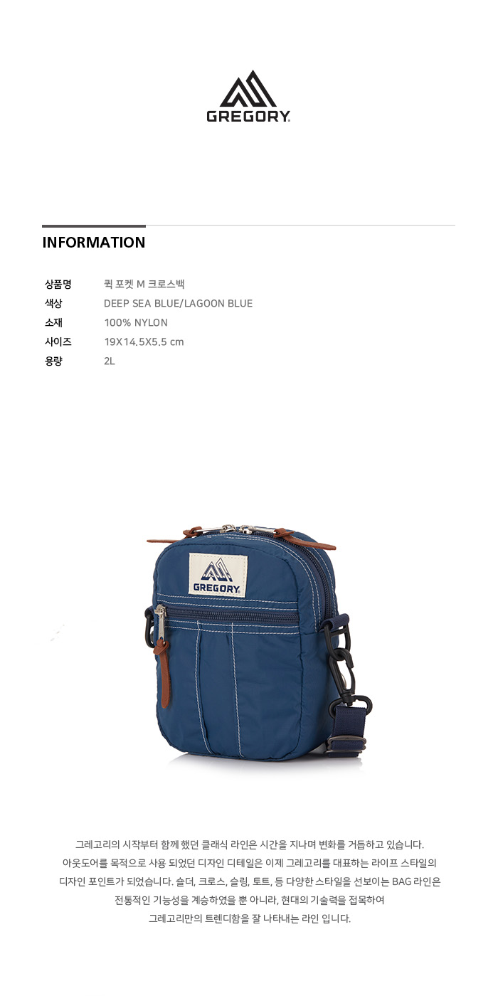 그레고리 퀵포켓 M 딥씨 블루 라군 블루