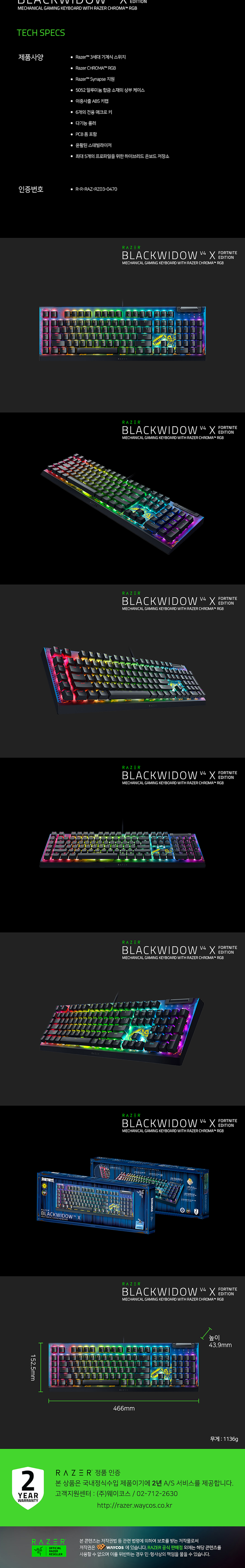레이저 블랙위도우 V4 X 리니어 포트나이트 에디션 한글