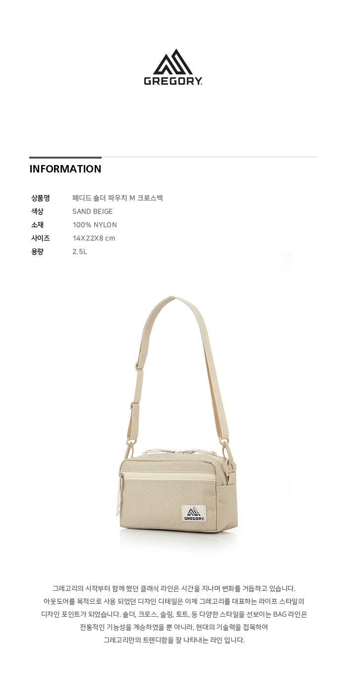 그레고리 패디드 숄더 파우치 M 샌드 베이지
