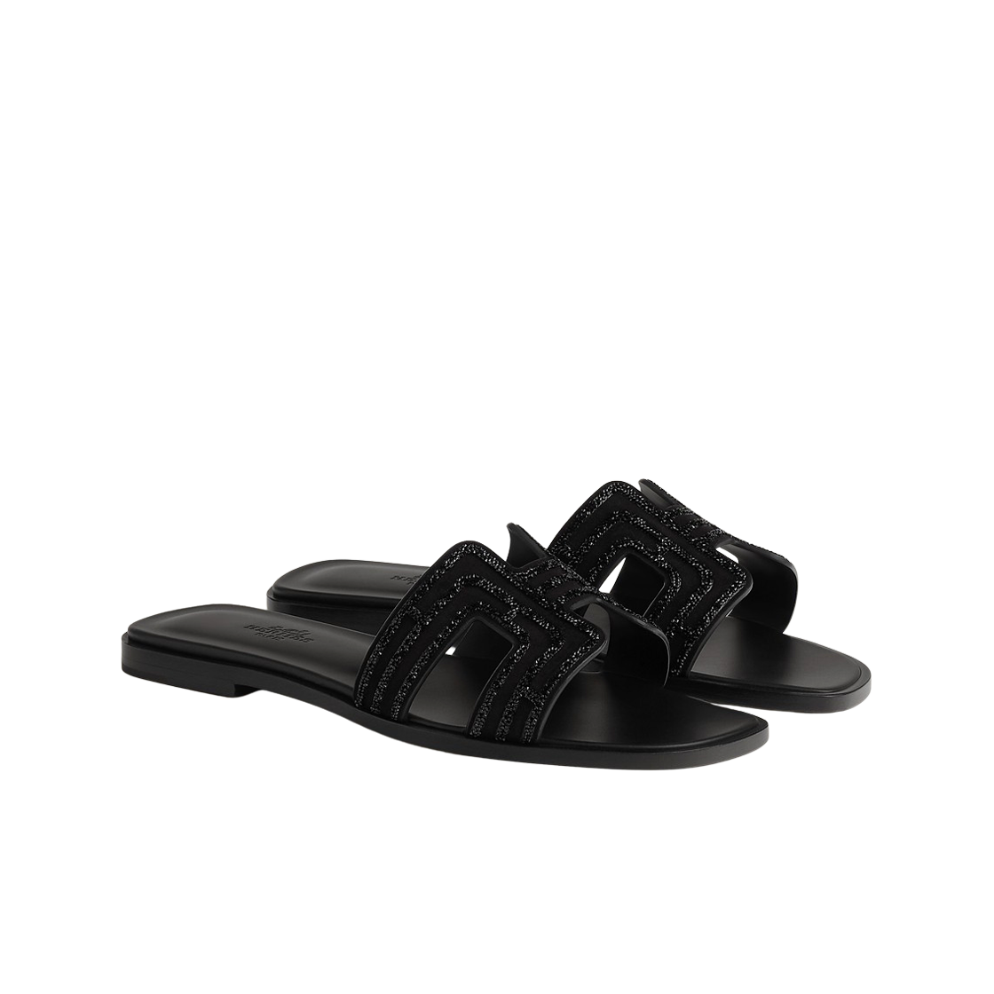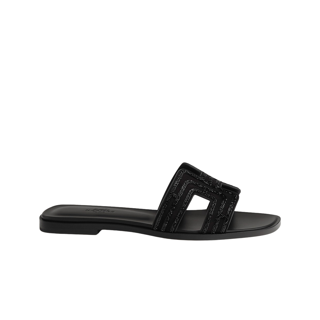 (W) Hermes Oran Sandal Suede Goatskin & Noir