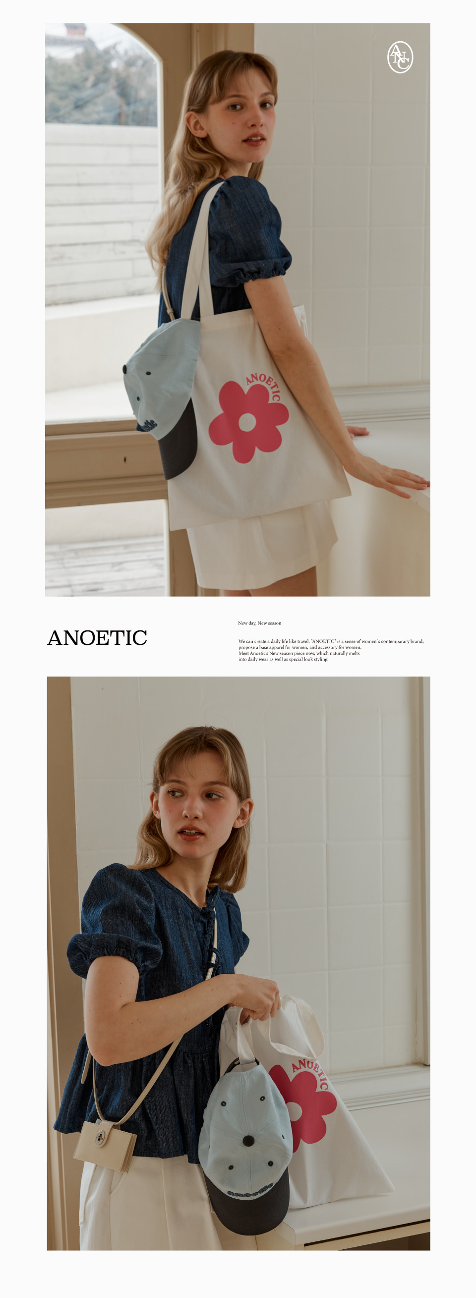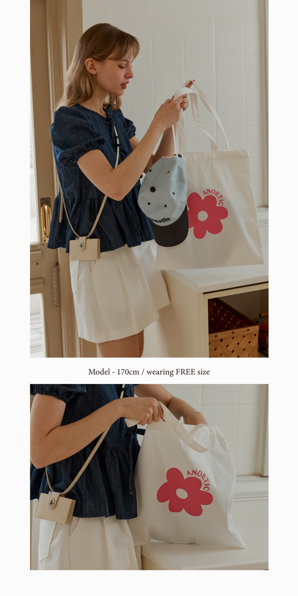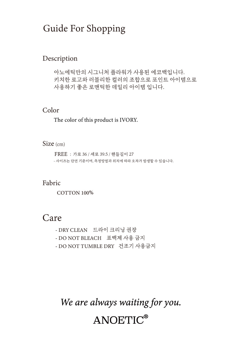 아노에틱 플라워 에코백 아이보리