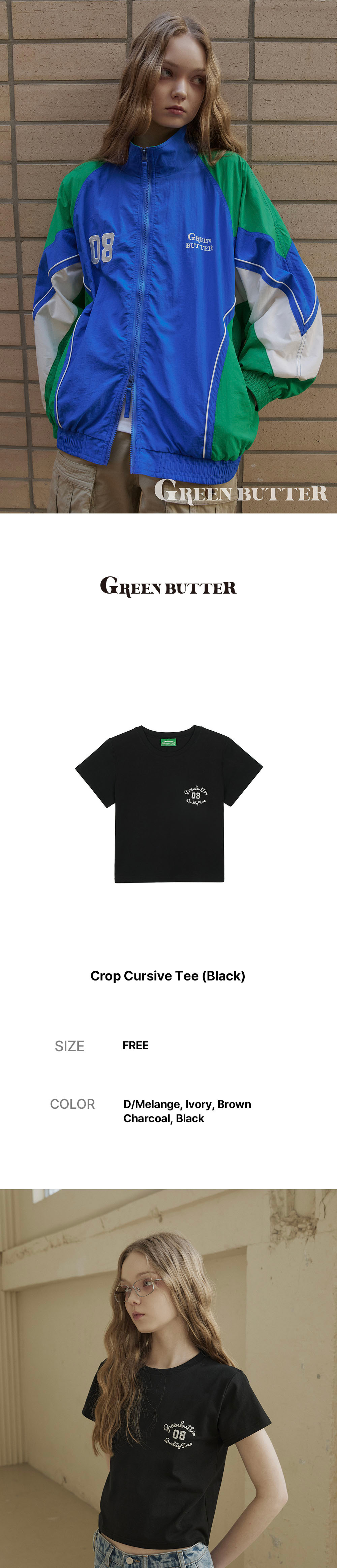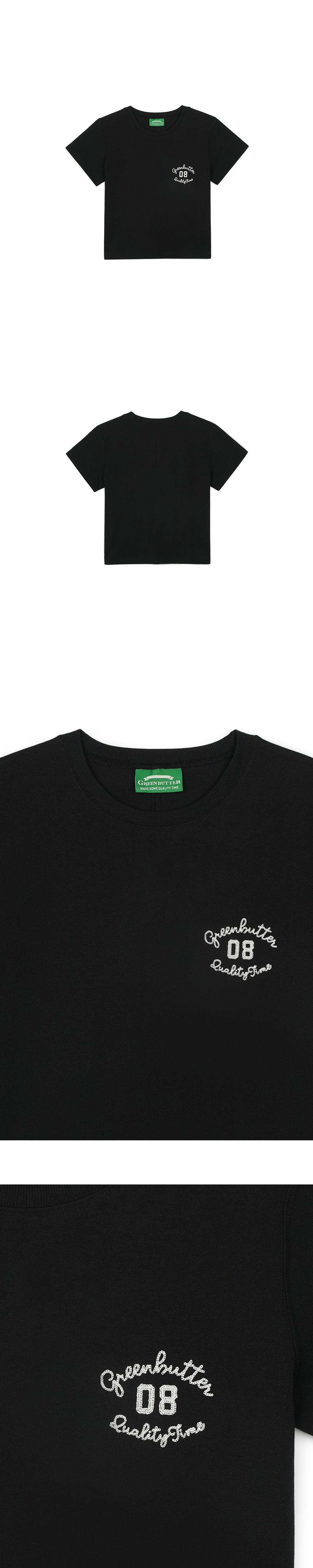 그린버터 크롭 컬시브 티 블랙