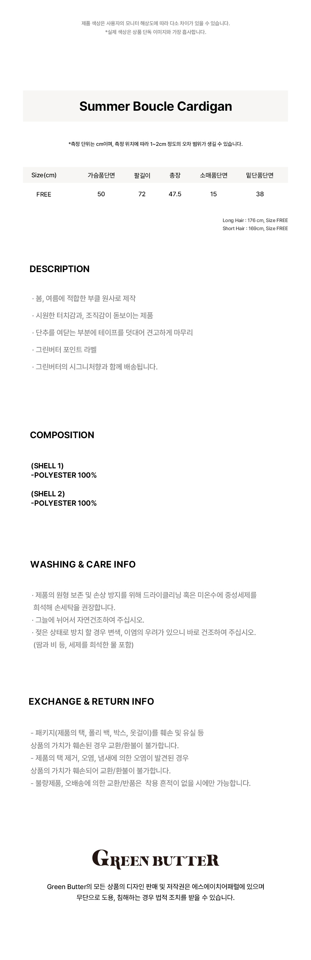 그린버터 썸머 부클 가디건 네이비