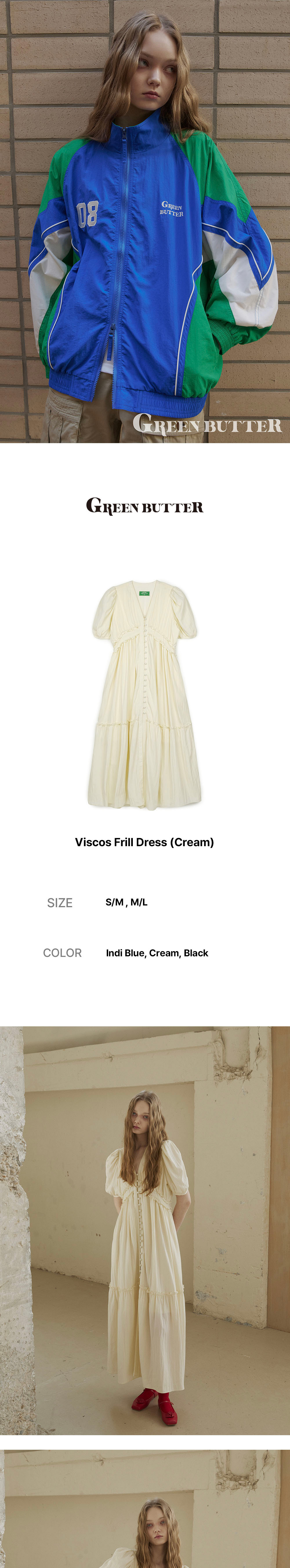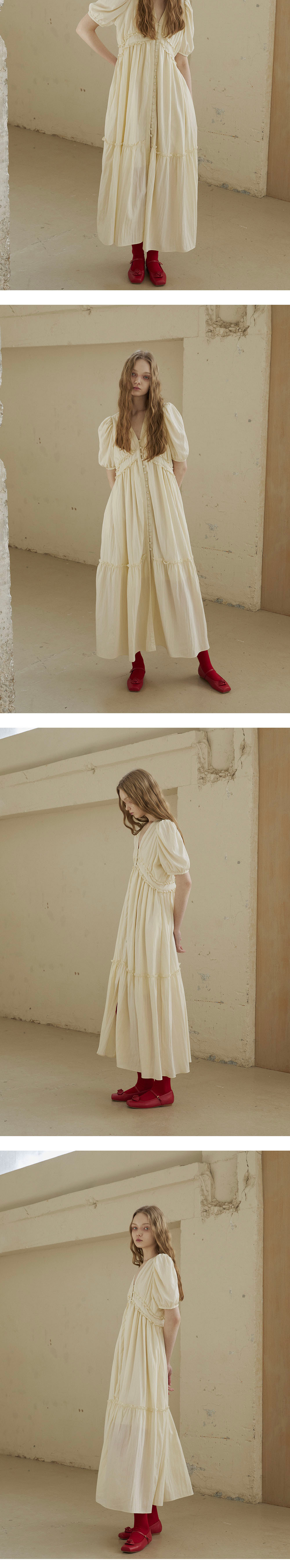 그린버터 비스코스 프릴 드레스 크림