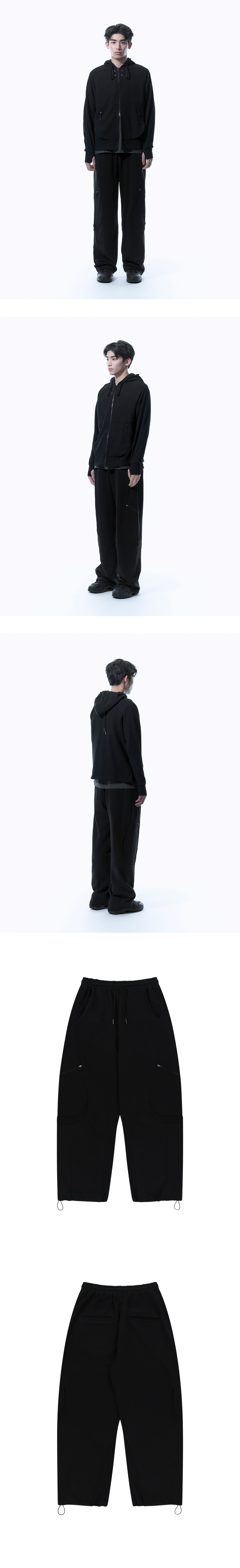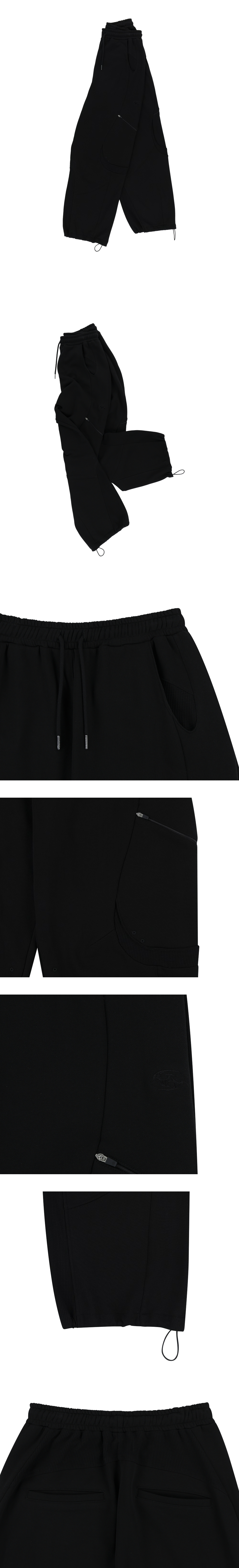 -부드러운 터치감의 코튼과 와플 소재 믹스 -곡선 형태의 카고 포켓 -실루엣 조절 가능한 밑단 스트링