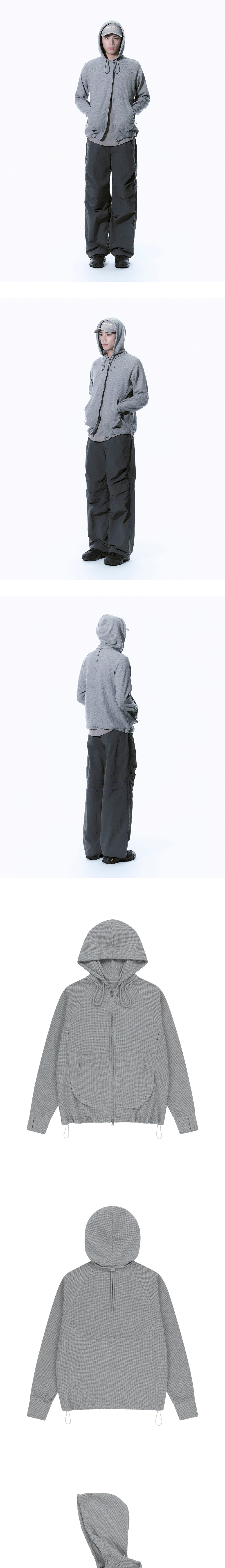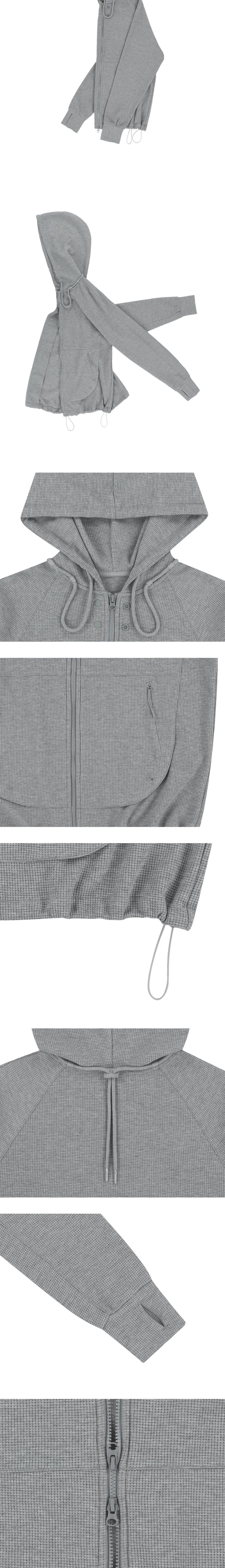 - 와플 소재로 제작 - 후면부까지 이어지는 후드 스트링 디테일 - 핑거홀 디테일