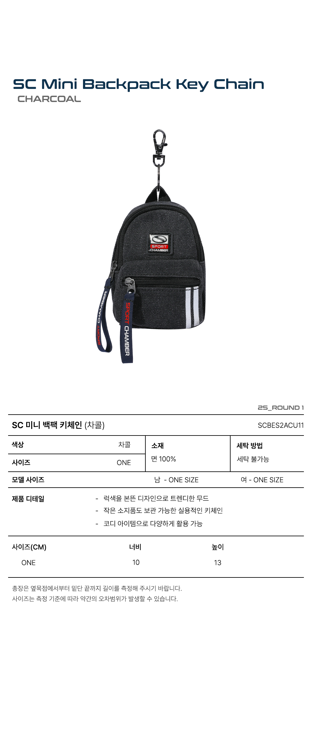 스포츠챔버 SC 미니 백팩 키체인 차콜