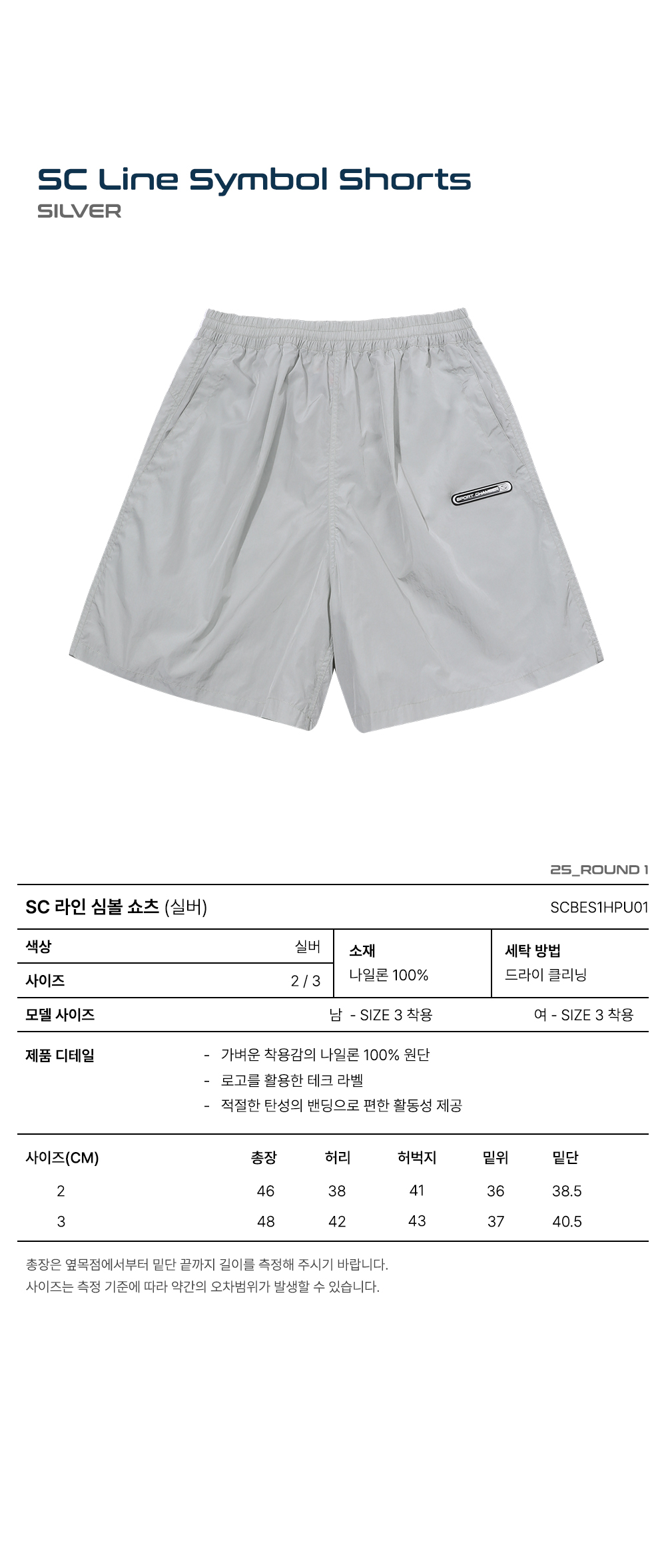 스포츠챔버 SC 라인 심볼 쇼츠 실버