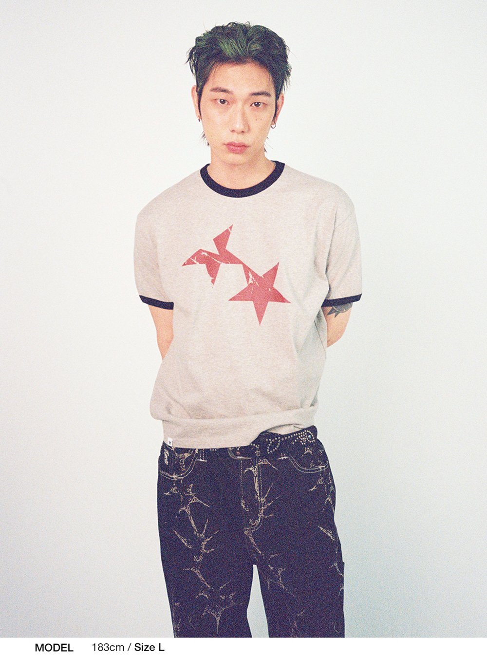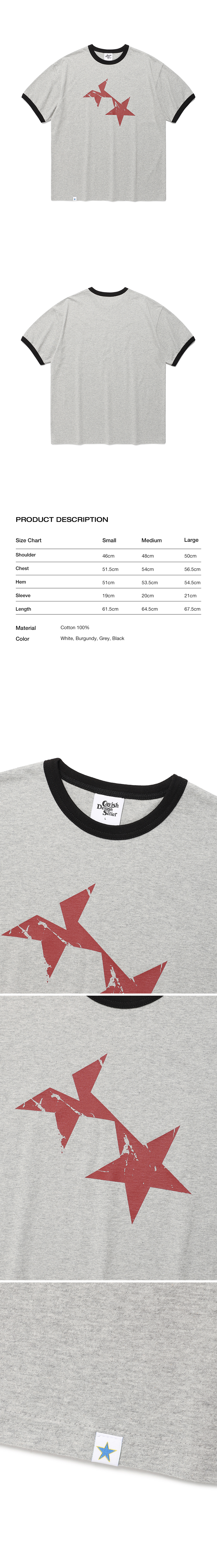 카비시 트윈 스타 링거 숏슬리브 티셔츠 그레이