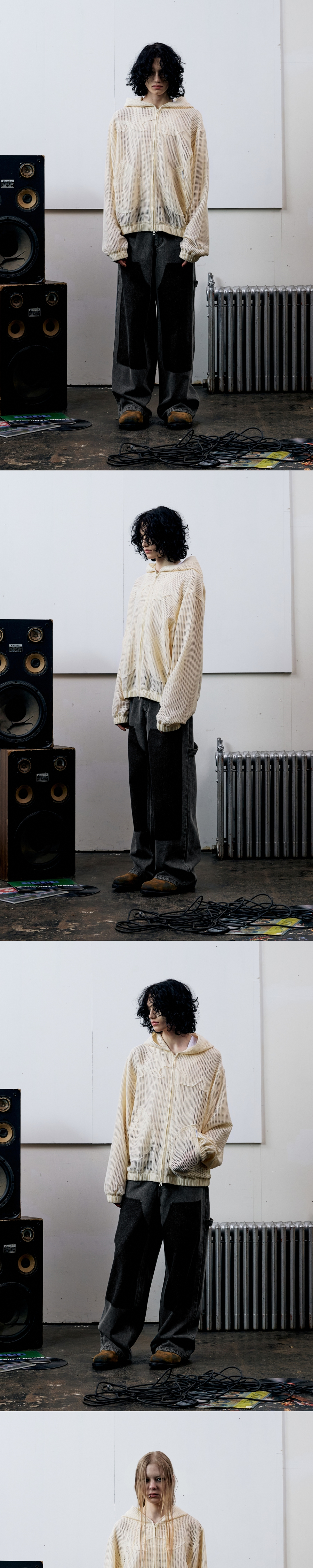 더비닐하우스 메쉬 그리드 재킷 아이보리