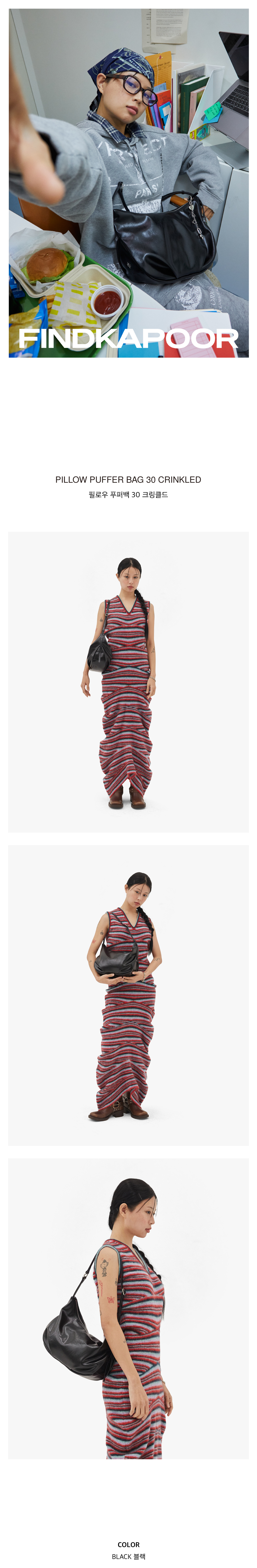 파인드카푸어 필로우 푸퍼백 30 크링클드 블랙
