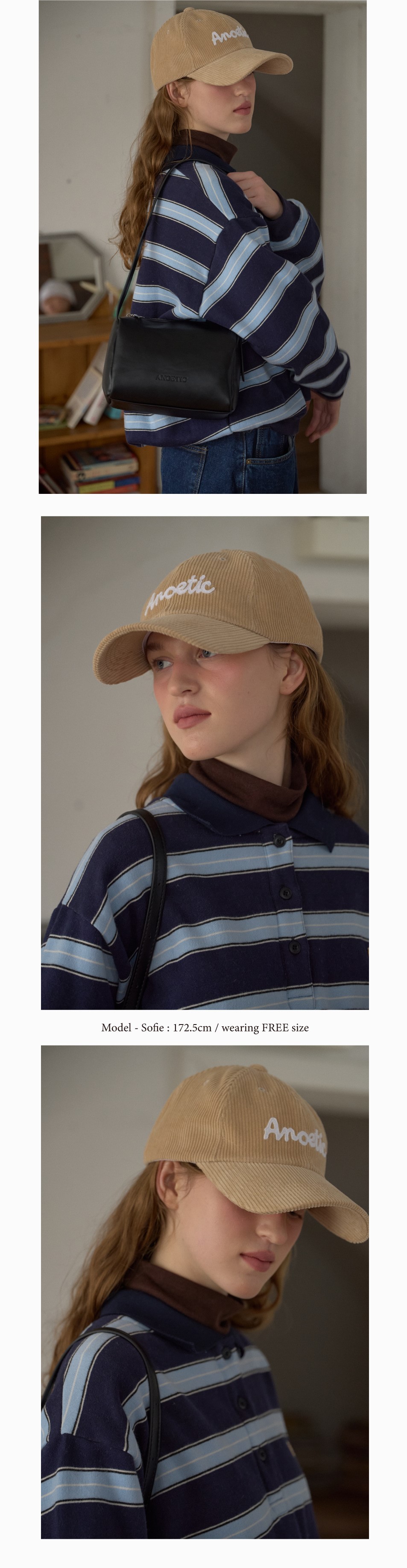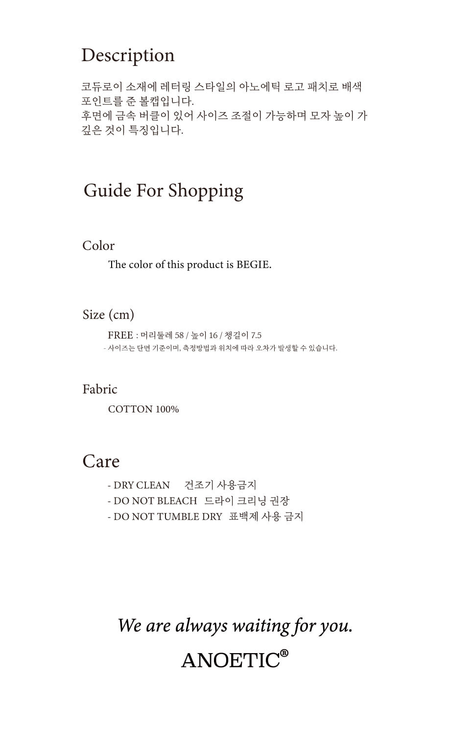 아노에틱 코듀로이 레터링 볼캡 핑크베이지