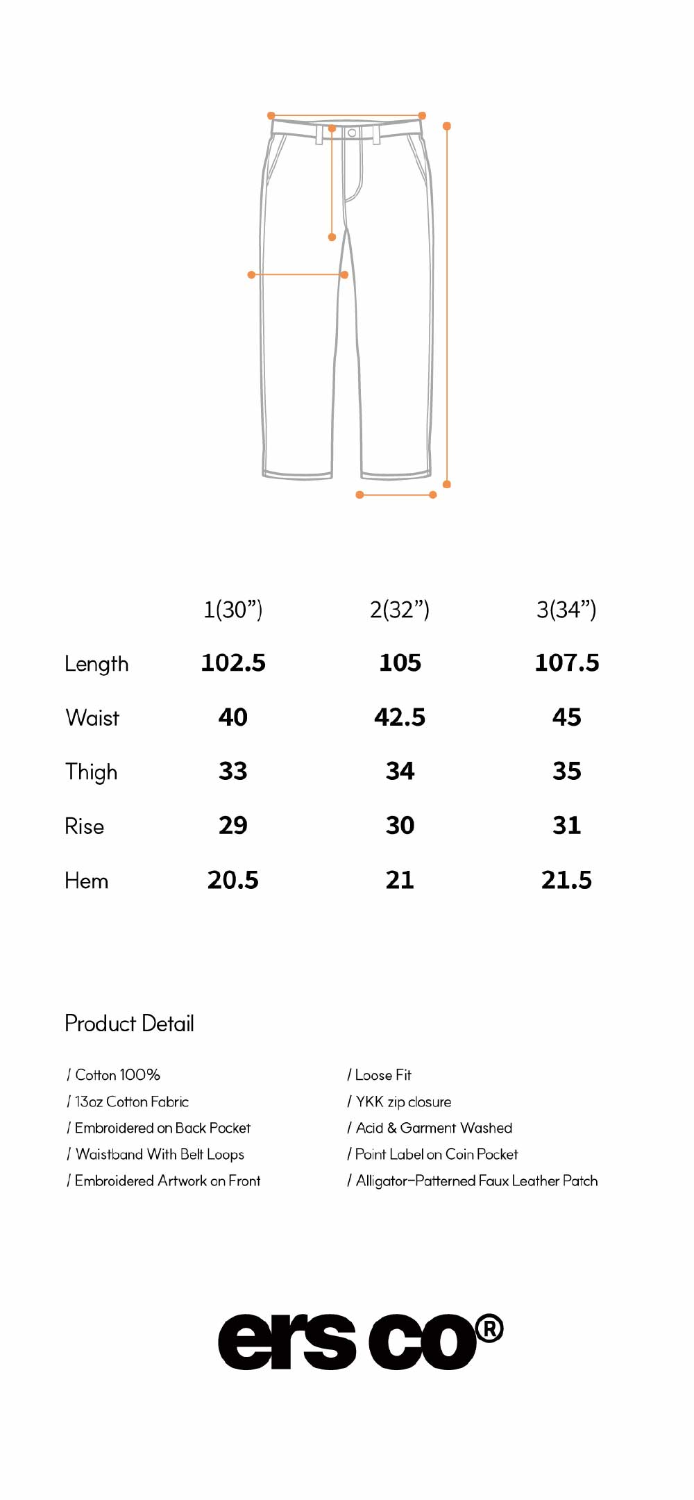 | 총장 | 허리 | 허벅지 | 밑단너비 |