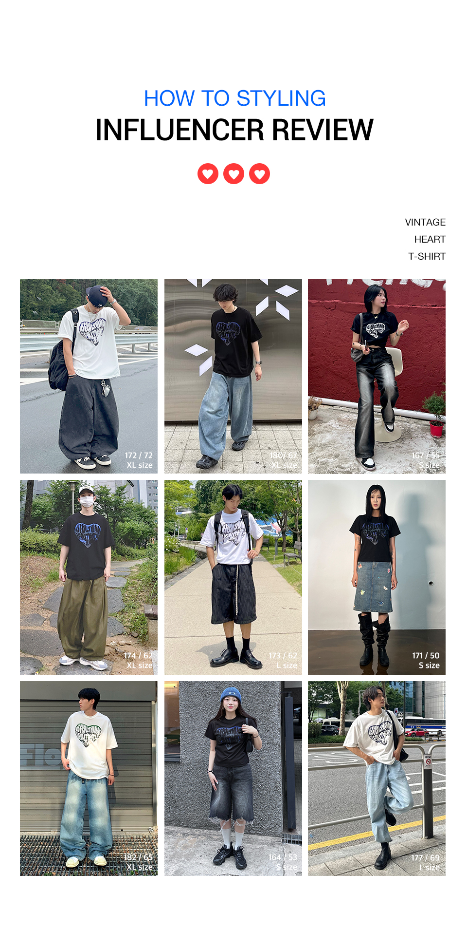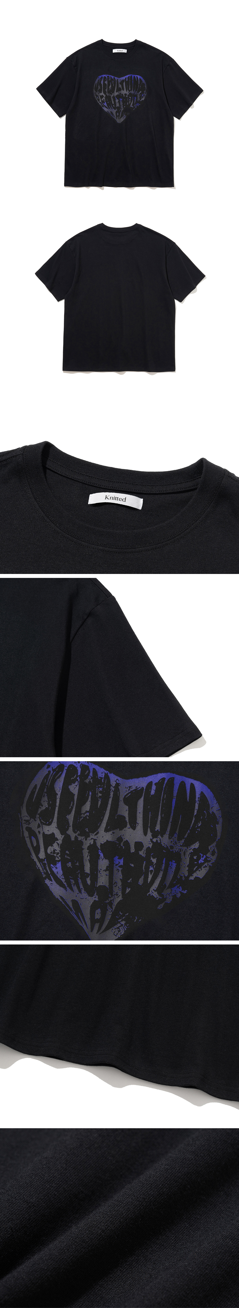 니티드 빈티지 하트 티셔츠 블랙-블루