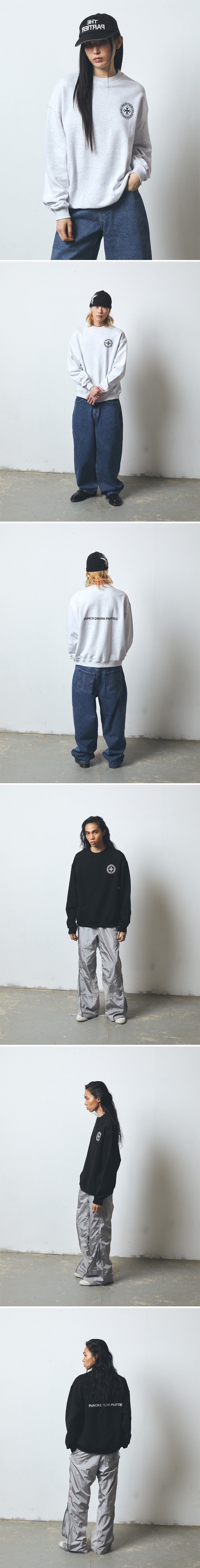펀치 드렁크 파티즈 서클 로고 스웻셔츠 멜란지화이트