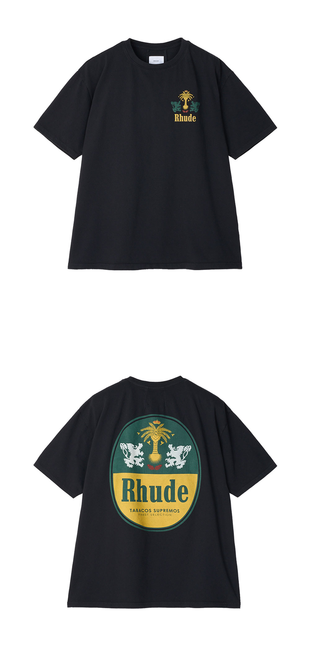 자연스러운 페이딩이 멋스러운 루드의 타바코 티 빈티지 블랙입니다. - 100% 코튼 저지 소재 - 리브 니트 크루넥 디자인 - 프론트 & 백 로고 그래픽 프린트 - 자연스러운 빈티지 페이딩 효과 - 드롭 숄더 & 릴랙스드 핏 - Made in USA