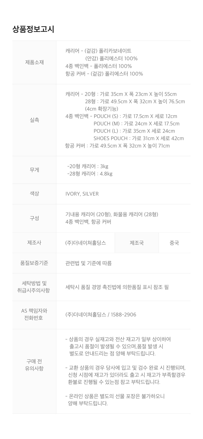 상품정보제공 고시