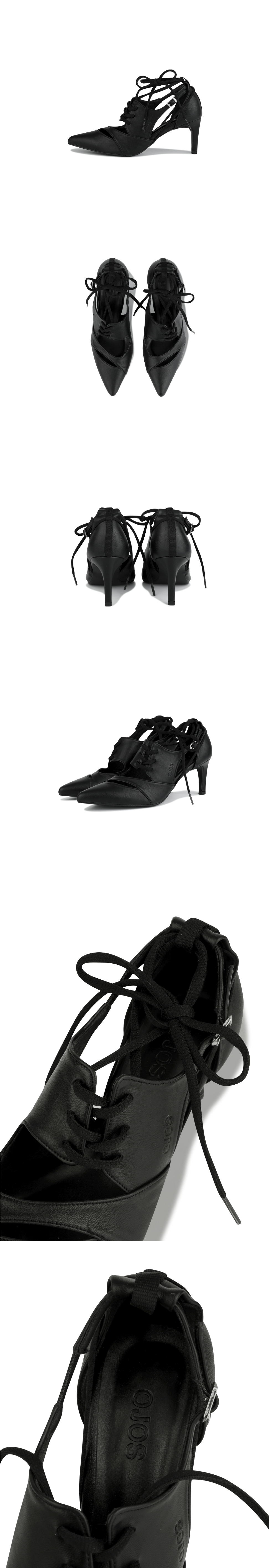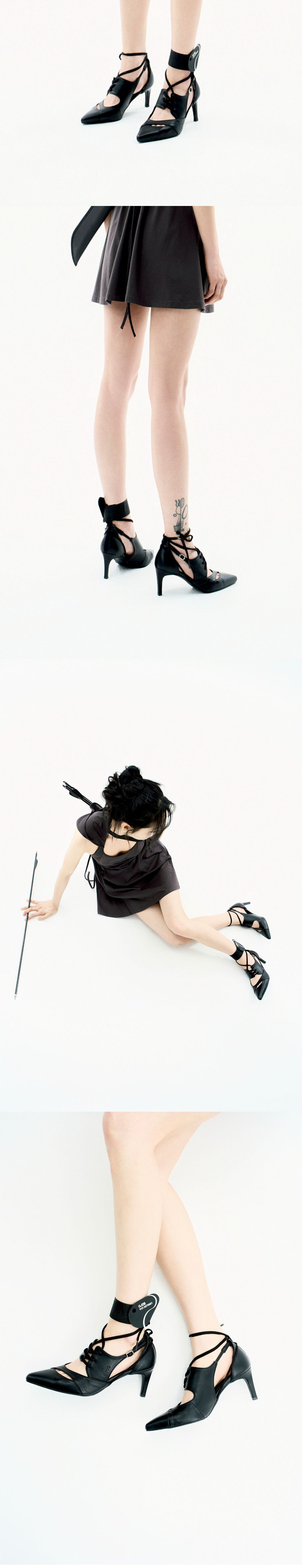 컷아웃 디테일의 포인티드 스텔레토 힐 | 컷아웃 디테일로 가벼운 착용감과 스타일 강조 | 오염에 강하며, 관리가 용이한 소재 | 포인티드 스텔레토 힐로 세련된 실루엣과 더불어 보다 더 길어보이는 각선미 연출 | 발등 레이스업(Lace-up) 마감으로 착용자의 발 모양에 맞게 조정 가능 | 사이드 발목쪽 조절 가능한 버클사용으로 더욱 안정적인 착용감 제공 | 미디엄 힐로 편안함과 스타일리쉬함을 동시에 제공 | 다양한 착장과 조화를 이루는 다재다능 아이템 (포멀한 무드 & 캐주얼한 무드) | 사이드 OJOS 로고 음각 디테일 Model is 168cm and wears size 240.