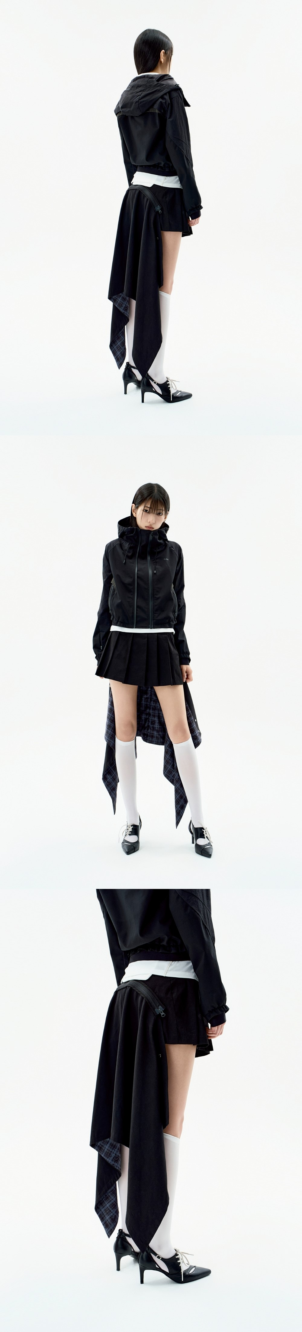 다양하게 연출가능한 언밸런스 분리 패널 스커트 | 언밸런스한 실루엣으로 떨어지는 디자인 | 분리형 패널과 2-Way 지퍼 디테일로 멀티 스타일링 아이템 | 2개 다른 형태로 위치한 지퍼를 활용하여 다양한 연출 가능 | 패널 속 조절 가능한 스냅으로 미디 기장감의 랩 스커트로 변형 가능 | 패널을 분리하여 단독으로 착용하거나 다른 하의와 레이어드 가능 | 체크 안감을 통해 움직임에 따른 시각적 포인트 | 가벼운 소재와 유연한 착용감으로 장시간 착용 가능 | 플리츠스커트에서 착안한 디자인으로 포멀부터 캐주얼까지 아우르는 확장형 아이템 | 사계절 착용 가능 | 전면과 후면 패널용 YKK 지퍼 및 OJOS 로고 풀러 마감 | 사이드 오픈 YKK CONCEAL® 지퍼 마감 * Model is 168cm and wears size 1.