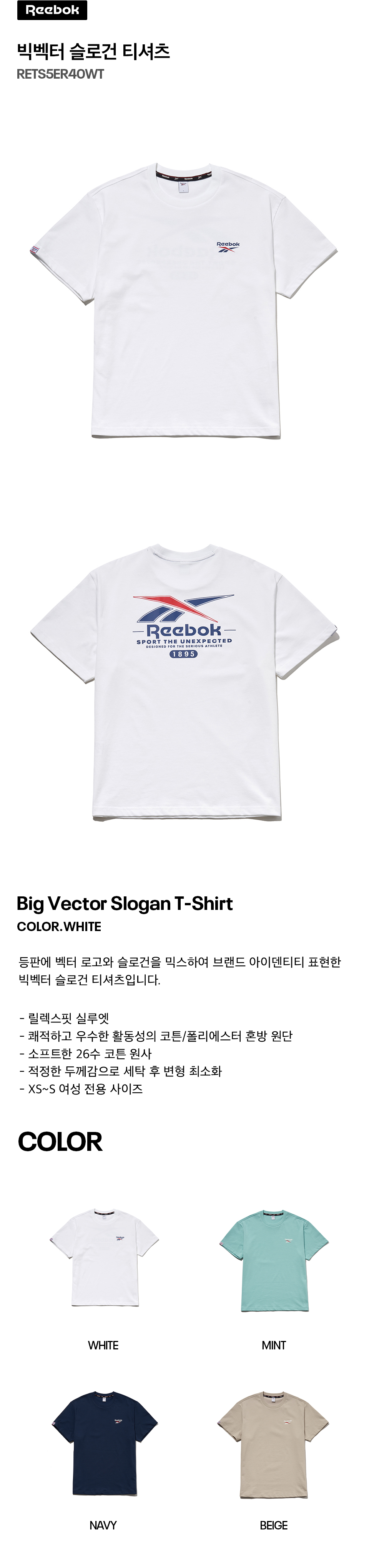 리복 빅벡터 슬로건 티셔츠 화이트