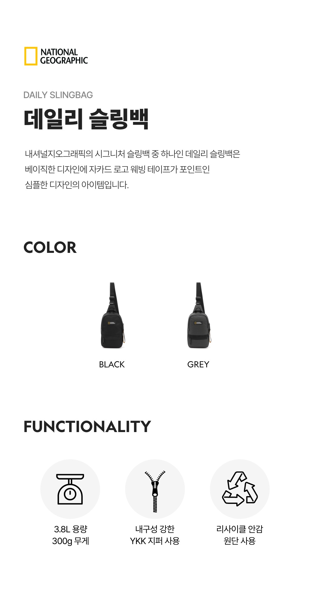 내셔널지오그래픽 데일리 슬링백 블랙