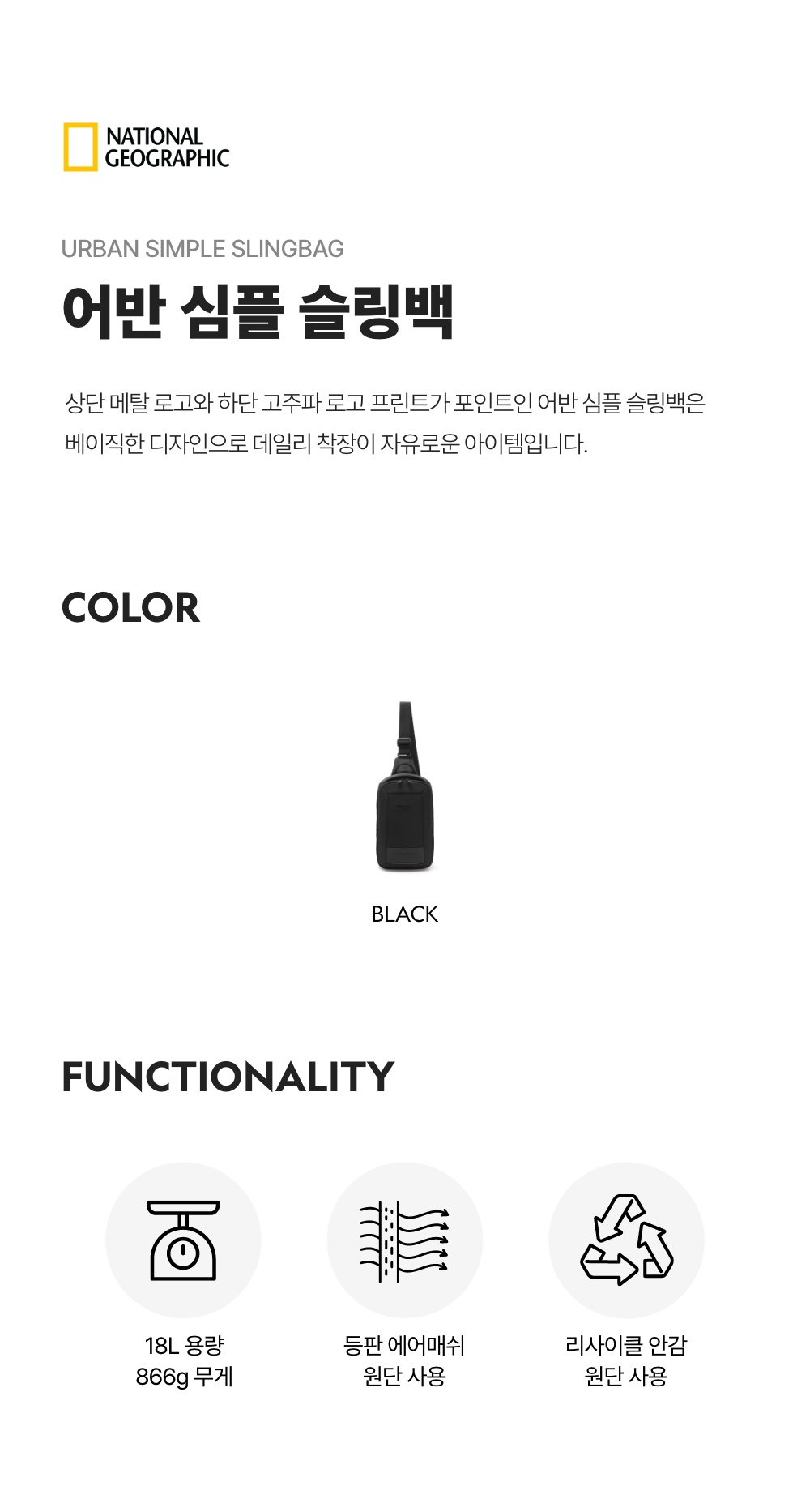 내셔널지오그래픽 어반 심플 슬링백 블랙