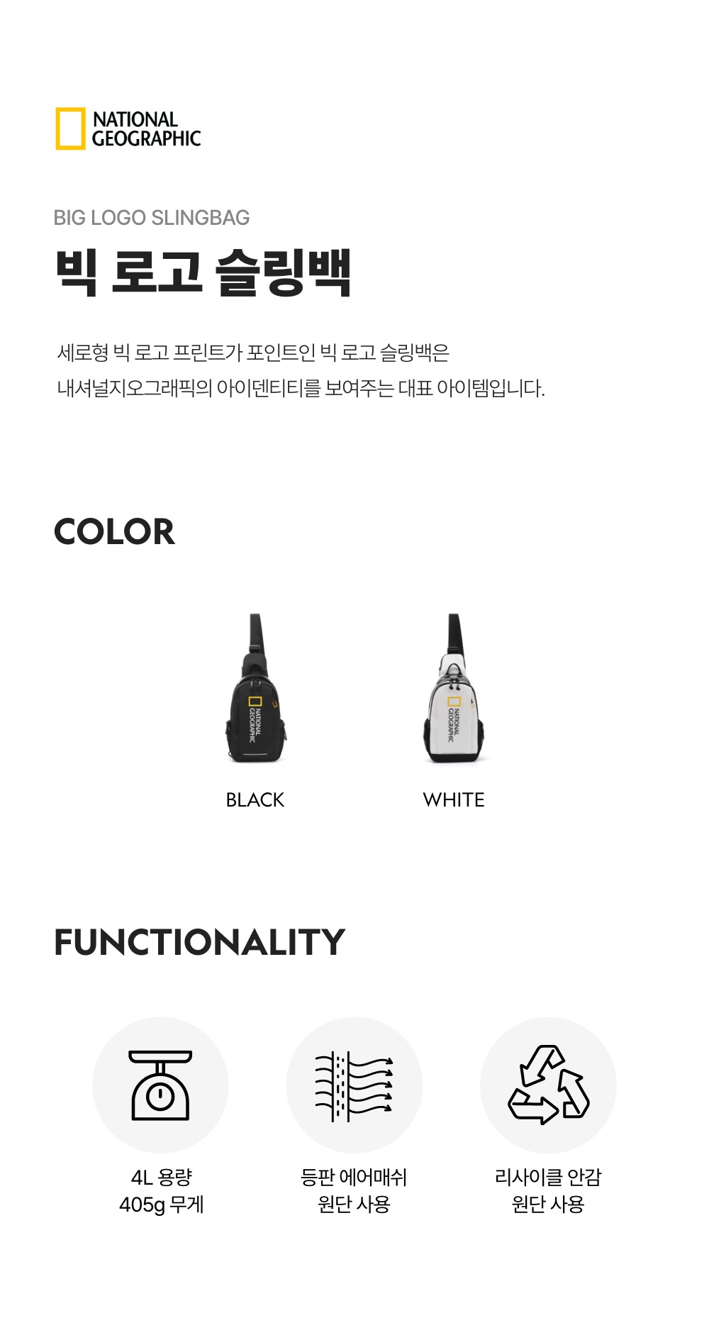 내셔널지오그래픽 빅로고 슬링백 블랙