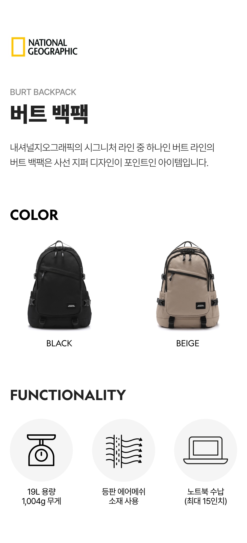 내셔널지오그래픽 버트 백팩 블랙