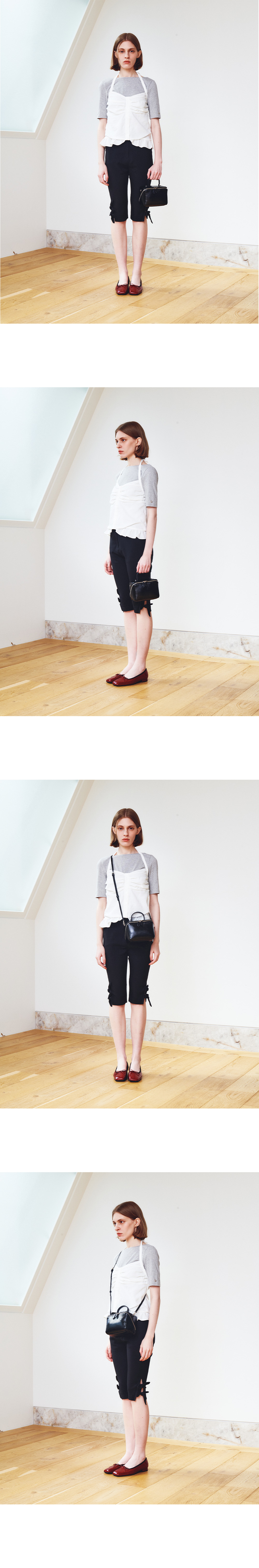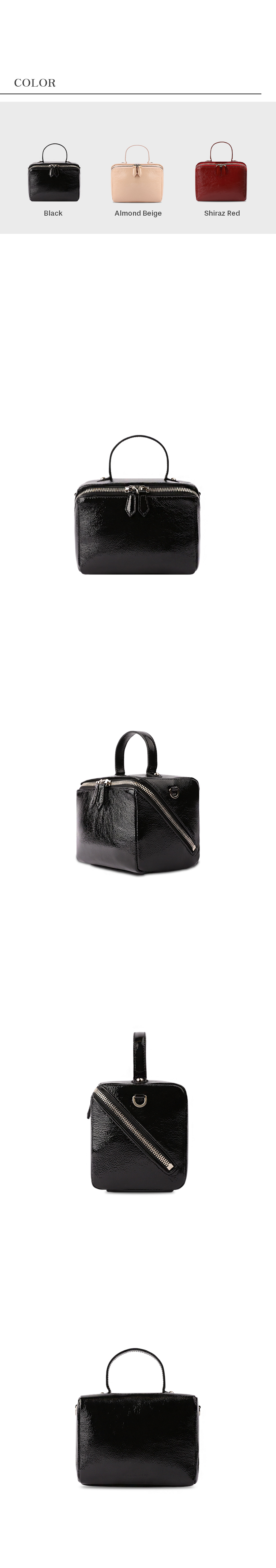 서클형 핸들과 사각 형태의 쉐입이 매력적인 보카 큐브 백입니다. 링클 페이던트 타입의 이태리 카우 레더로 제작된 가방으로 불규칙한 주름과 고급스러운 광택이 매력적인 가방입니다. 직사각형 형태로 제작되어 공간 활용도가 높고, 견고한 쉐입이 특징인 백으로 대각선으로 절개된 여닫이 디테일을 추가하였습니다. 핸들 또는 별도로 제공되는 스트랩을 활용해 토트, 숄더, 크로스백 등 다양한 연출이 가능합니다. 구성 : Bocca cube bag + Leather Strap