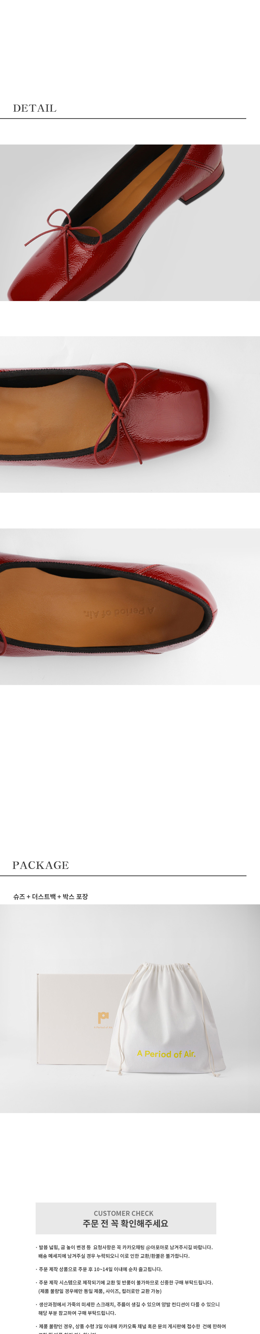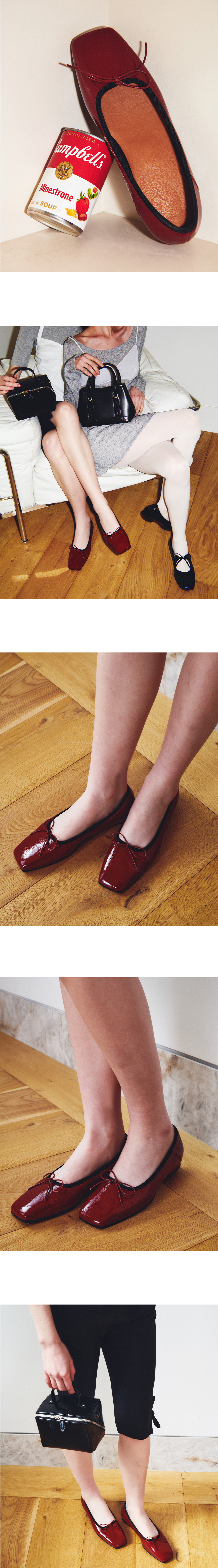 길게 떨어지는 스퀘어 라인의 토와 발등에 접하는 부분을 감싸는 밴딩 콤비로 제작된 스퀘어 밴딩 플랫슈즈입니다. 링클 페이던트 타입의 이태리 카우 레더를 사용하였고 나플락 소재의 불규칙한 주름이 감각적인 스퀘어 토 디자인으로 리본 디테일을 추가하여 우아한 실루엣의 제품입니다. 편안한 착화감을 위해 발을 안정적으로 감싸는 탑 라인 밴딩 디테일과 매트리스 폼을 사용하였습니다. 플랫 형태로 미니멀하면서도 유니크한 디테일이 돋보이는 슈즈입니다.