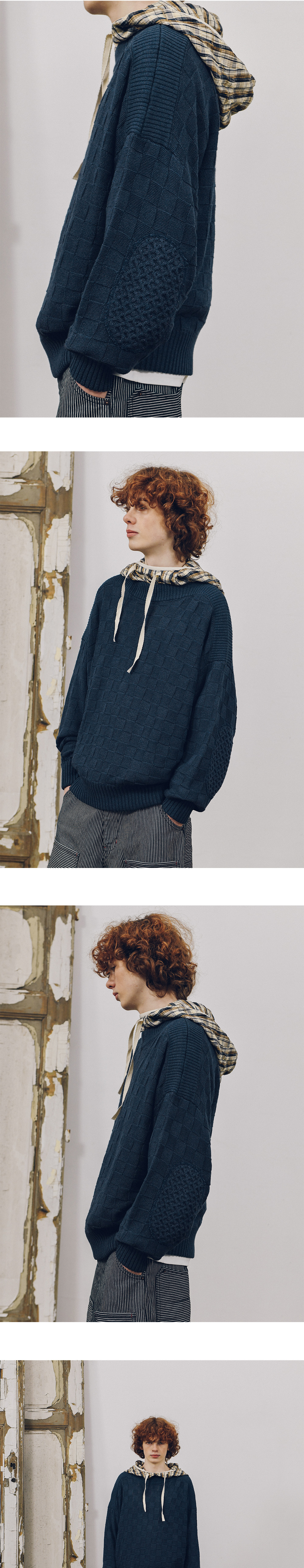 오가프 보트넥 롱 슬리브 니트 네이비